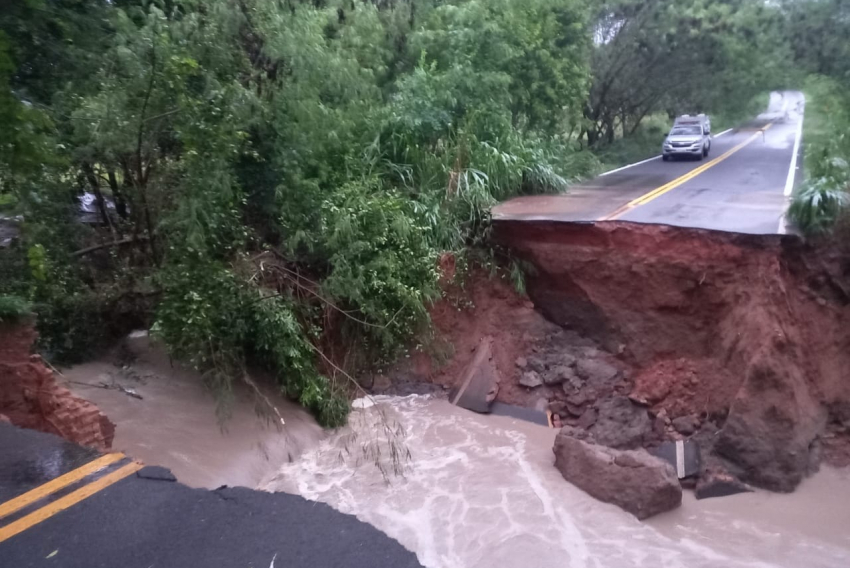Um caminho alternativo, por estrada de terra, foi improvisado, mas o tráfego por ali é difícil devido ás condições do terreno após o alto volume pluviométrico registrado com as chuvas que atingiram a região.