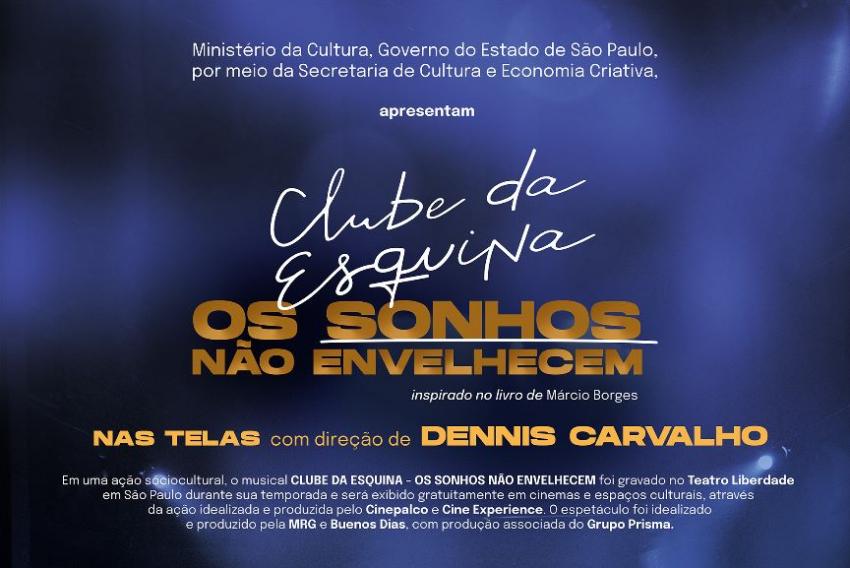 O filme do musical "Clube Da Esquina - Os Sonhos Não Envelhecem" foi adiado por problemas técnicos e uma nova sessão de exibição foi reagendada para a quinta-feira (22). A gravação do espetáculo, que encantou o público durante sua temporada no Teatro da Liberdade, em São Paulo, será exibida gratuitamente no Teatro Castro Alves, na Rua Duque de Caxias, 20.