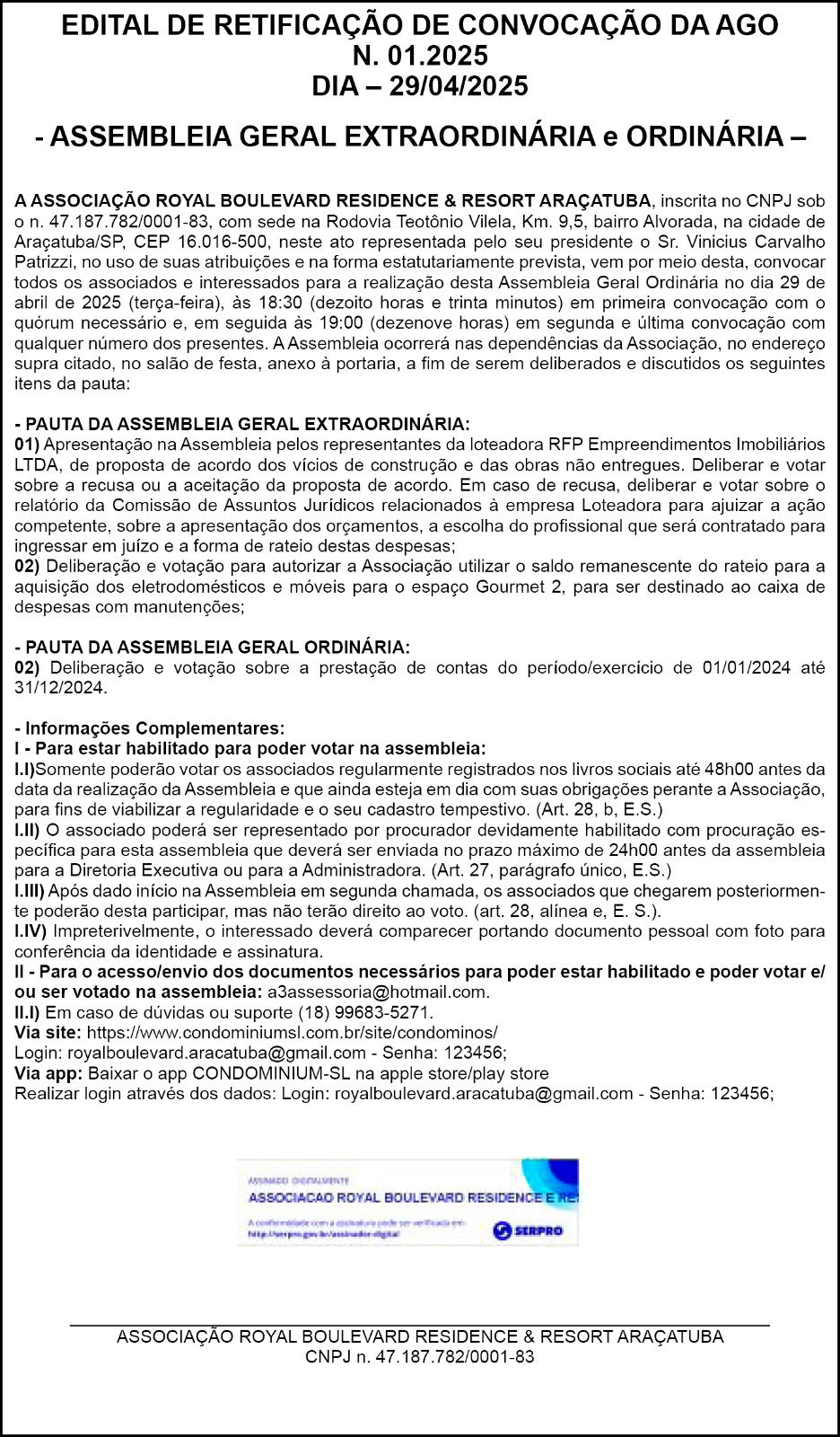 ASSOC. ROYAL. BOULEV EDITAL DE CONVOCAÇÃO 18.04.2025 07h00 | Tempo de leitura: < 1 min Certificado: Google Cloud Facebook Whatsapp Twitter Comentários Comentários Enviar
