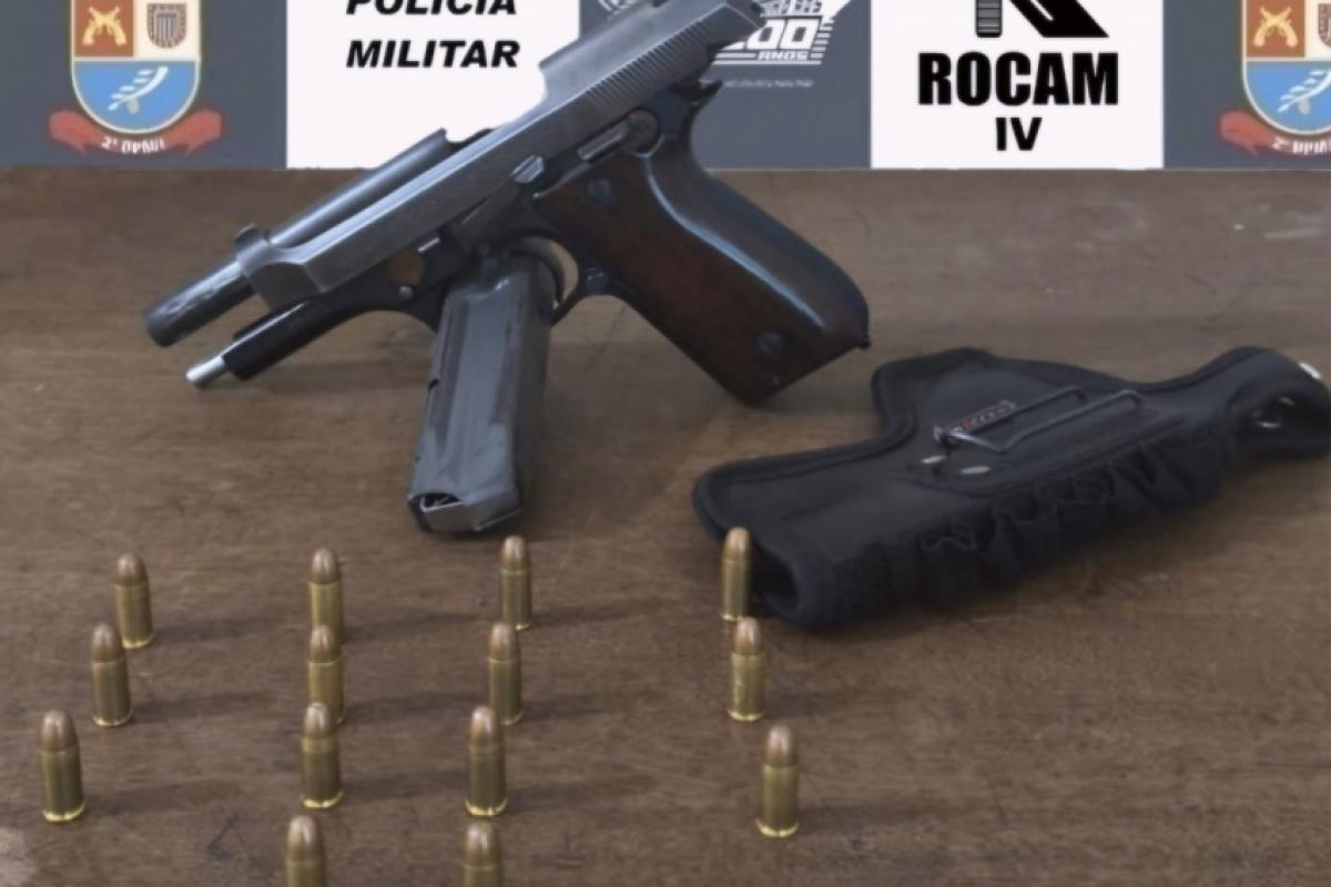 Diante da tentativa de abordagem, os suspeitos desobedeceram à ordem de parada e iniciaram fuga por diversas ruas do bairro. Em determinado momento, o passageiro desceu da motocicleta nas proximidades de uma área de mata e dispensou um objeto, que posteriormente foi identificado como uma pistola Taurus calibre 7.65, municiada com 14 projéteis.