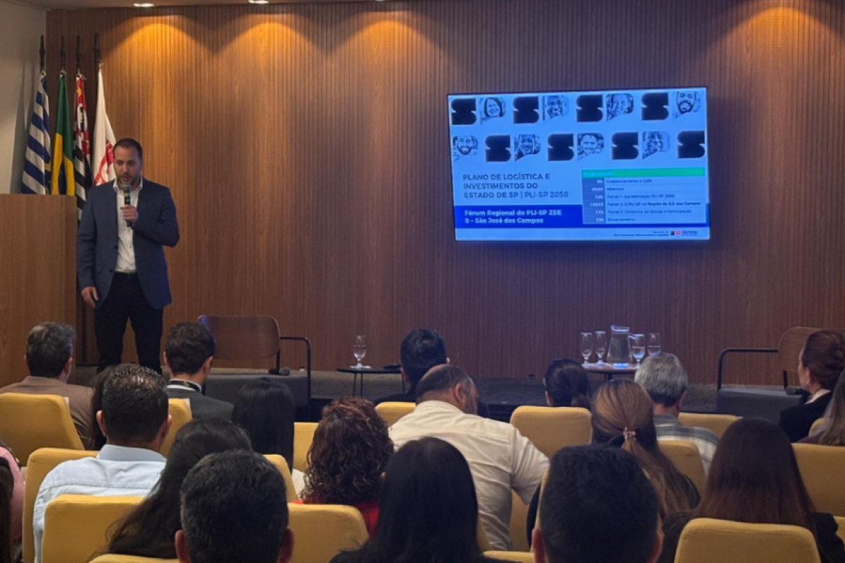 O Governo do Estado de São Paulo realizou nesta quinta-feira (12), no Ciesp de São José dos Campos, o 8º Fórum Regional do Plano de Logística e Investimentos (PLI-SP 2050). O evento reuniu autoridades e representantes do setor produtivo para diagnosticar gargalos nos sistemas de transporte e logística, além de planejar intervenções estratégicas na Zona de Zoneamento Ecológico-Econômico 9 (ZEE 9), que abrange 39 municípios e cerca de 2,5 milhões de habitantes.