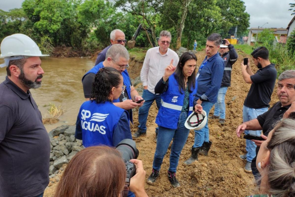 A secretária de Meio Ambiente, Infraestrutura e Logística do Estado de São Paulo, Natália Resende, visitou obra emergencial da agência SP Águas (ex-DAEE) em Guaratinguetá, nesta sexta-feira (13), após a cidade ter sido atingida por uma forte chuva seguida de inundação, afetando dois bairros inteiros – Jardim Rony e Parque das Árvores.