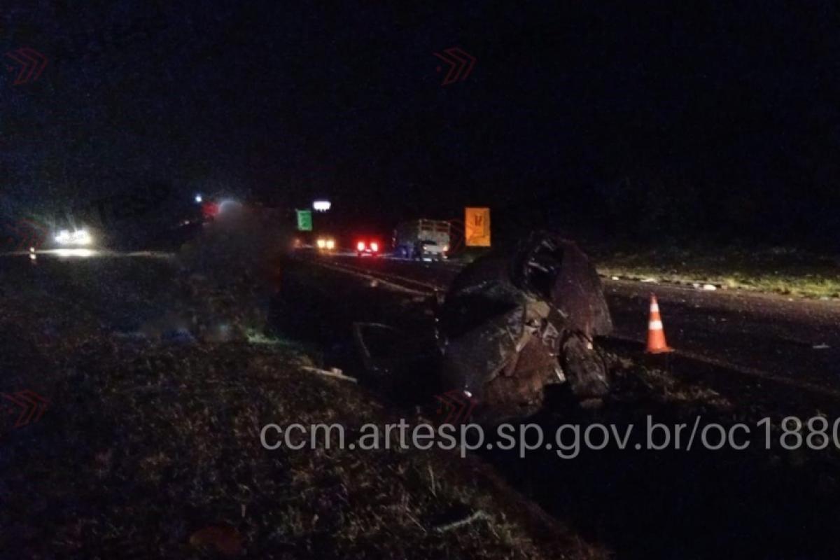 Após o impacto, o Yaris parou no acostamento do sentido oeste, enquanto a carreta ficou no acostamento do sentido leste.