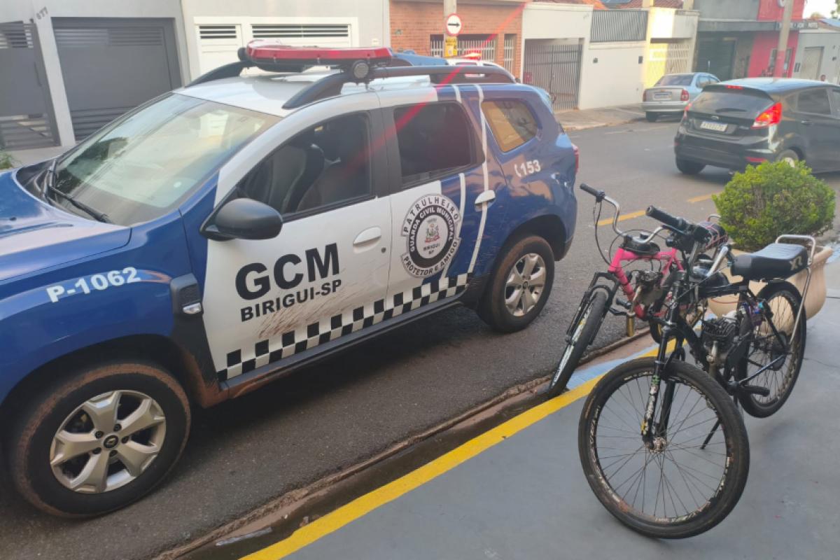 Durante patrulhamento pela Rua Santo Mamprim, nas proximidades do número 650, em Birigui, uma equipe em serviço identificou duas bicicletas motorizadas — uma preta e outra rosa — circulando em desacordo com a legislação de trânsito.