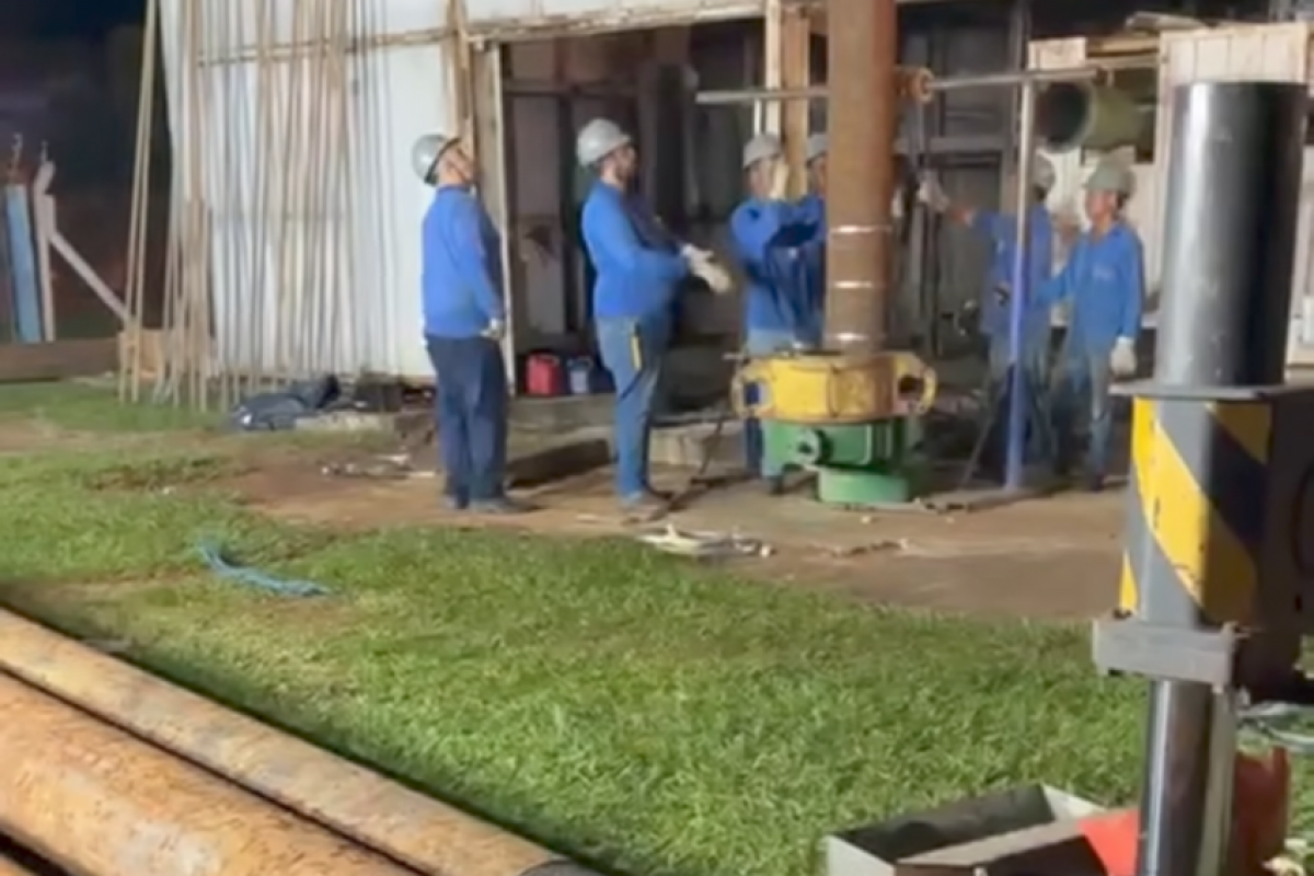 Na atualização divulgada por volta das 23h30 de sábado, a prefeita apareceu no local acompanhando o trabalho técnico de substituição da bomba. Segundo ela, a nova estrutura já estava sendo submersa para ser recolocada no poço, em um procedimento delicado e demorado, já que a reinstalação precisa ser feita com cuidado até que o sistema volte a puxar água normalmente para a superfície.