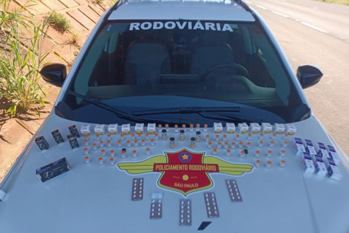 Entre os itens apreendidos estavam uma Smart TV de 50 polegadas e uma grande quantidade de medicamentos contrabandeados do Paraguai, armazenados em uma caixa térmica. Foram localizados frascos de tirzepatida, inclusive da marca Lipoless, além de enantato de testosterona e comprimidos de Landerlan.