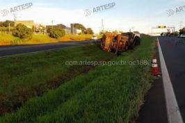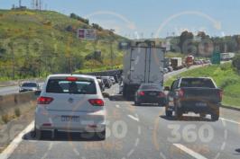 AGORA: Caminhão tomba na Tamoios e pistas são bloqueadas