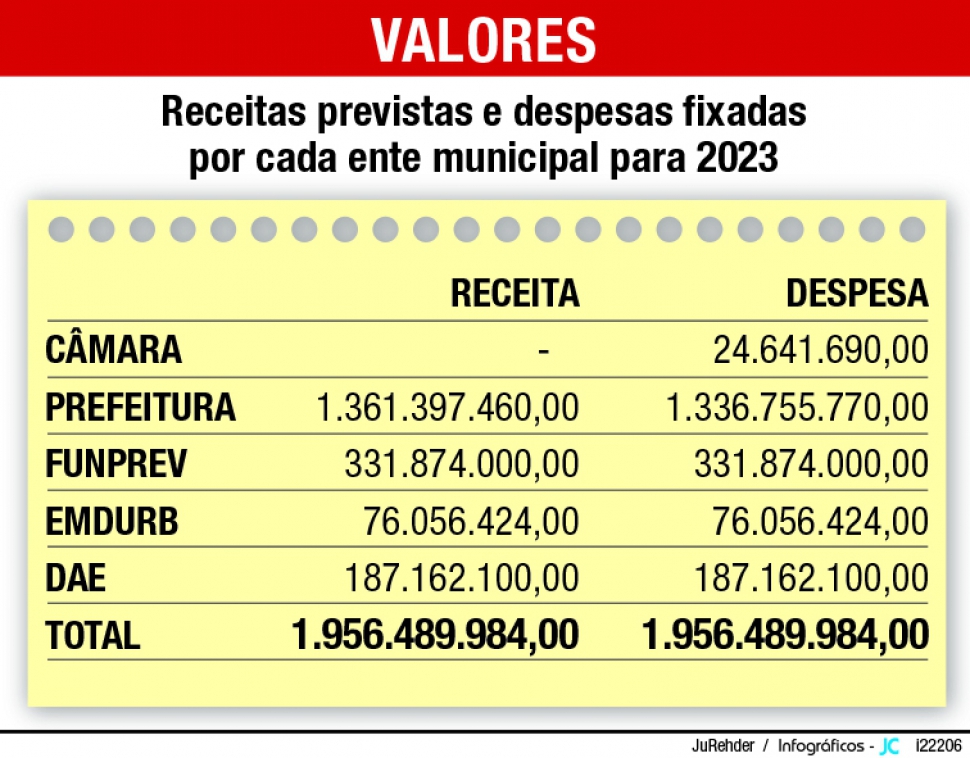 A LOA estabelece anualmente as previsões de receita e projeção de despesas, além de apontar quais os objetivos para alocação de recursos e as metas de investimentos a serem cumpridas durante o ano. O orçamento de Bauru estimado para 2023 é de R$ 1.956.489.984,00, enquanto o previsto até dezembro deste ano é de R$ 1.629.145.873,00.