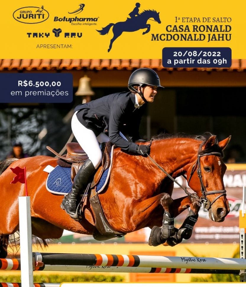 Em prol da Casa Ronald McDonald Jahu, instituição que acolhe e oferece serviços gratuitos para crianças e adolescentes com câncer que realizam tratamento no Hospital Amaral Carvalho, a Sociedade Hípica Jahu realiza evento beneficente, a 1ª Etapa de Salto Casa Ronald McDonald Jahu, no sábado (20), a partir das 9h.