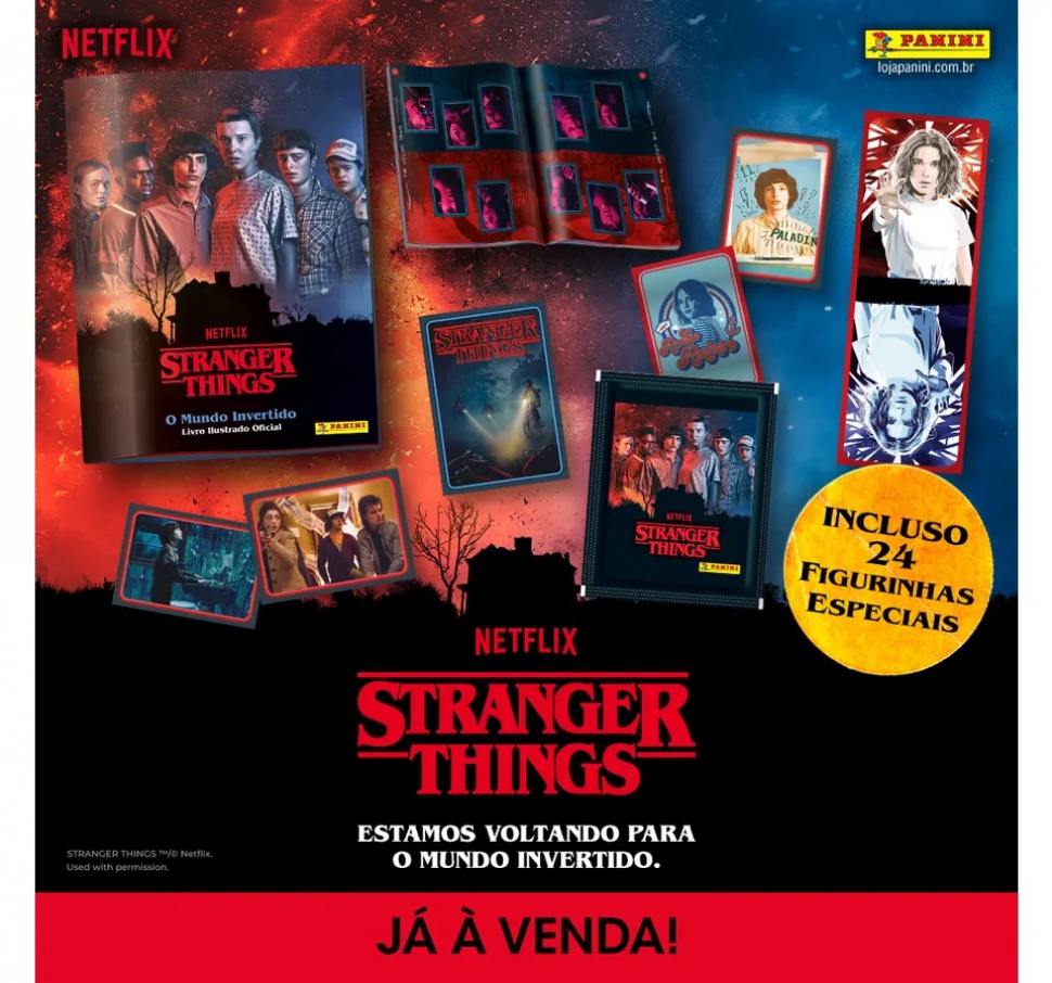 O sucesso da série "Stranger Things" (Netflix) segue crescendo após o lançamento de sua quarta temporada. Agora, o mundo invertido chega às bancas e sites com um novo formato: Um álbum de figurinhas.