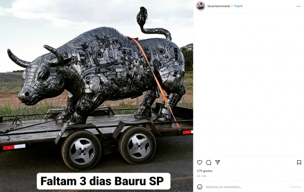 "O touro simboliza a força, a coragem e a determinação de um povo. A sucata, por sua vez, representa a reconstrução. Resolvemos presentear Bauru com essa escultura em função de todas as crises que vivemos nos últimos tempos, seja por causa da pandemia ou em função da própria economia. Consideramos que depende de cada um de nós reconstruir um País melhor e acreditamos na força, coragem e determinação da cidade para ir além", ressalta Fabio Freire Lara, idealizador da ação e sócio proprietário da Copaíba Invest, empresa da XP Investimentos em Bauru.