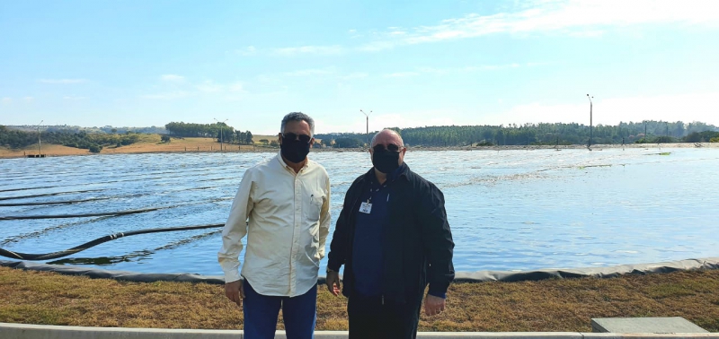 No último dia 21, o presidente do Departamento de Água e Esgoto (DAE), Marcos Saraiva, o secretário de Obras, Leandro Dias Joaquim, além de engenheiros e diretores da autarquia e da Prefeitura de Bauru, realizaram uma visita técnica à Estação de Tratamento de Esgoto (ETE) Palmital, em Marília. Na ocasião, eles conheceram a estrutura e o funcionamento do local, que teve a sua última bacia inaugurada no final de 2020, levando a cidade a tratar 100% do seu esgoto. Na foto, estão Leandro Dias Joaquim e Marcos Saraiva.