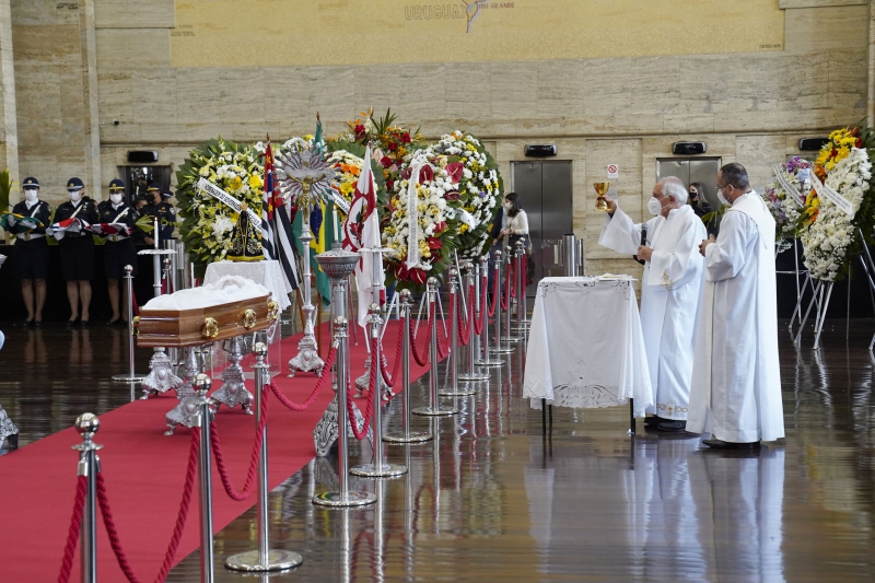 O corpo do prefeito chegou à prefeitura carregado por agentes da Guarda Civil Metropolitana por volta das 13h15. Assim como no enterro, a entrada foi restrita a familiares e amigos mais próximos por causa da pandemia de Covid-19.