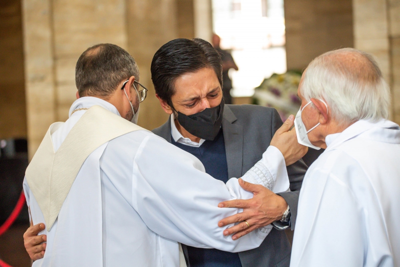 Durante a missa, Tomás, o filho de Covas, recebeu apoio das pessoas presentes e, emocionado, colocou a cabeça junto ao corpo do pai. Ao fim da cerimônia, ajudou a carregar o caixão de Bruno Covas até o carro do Corpo de Bombeiros.