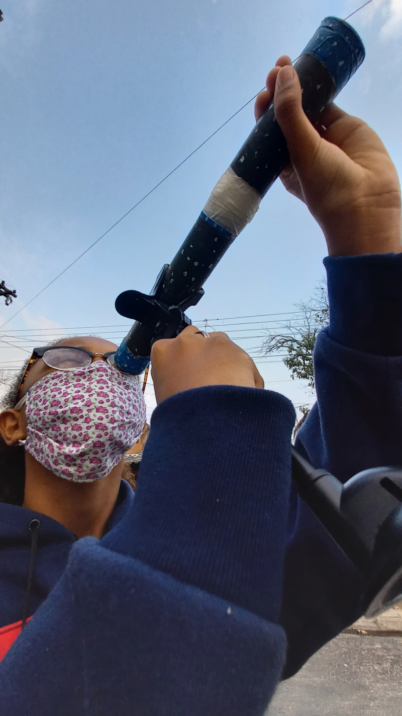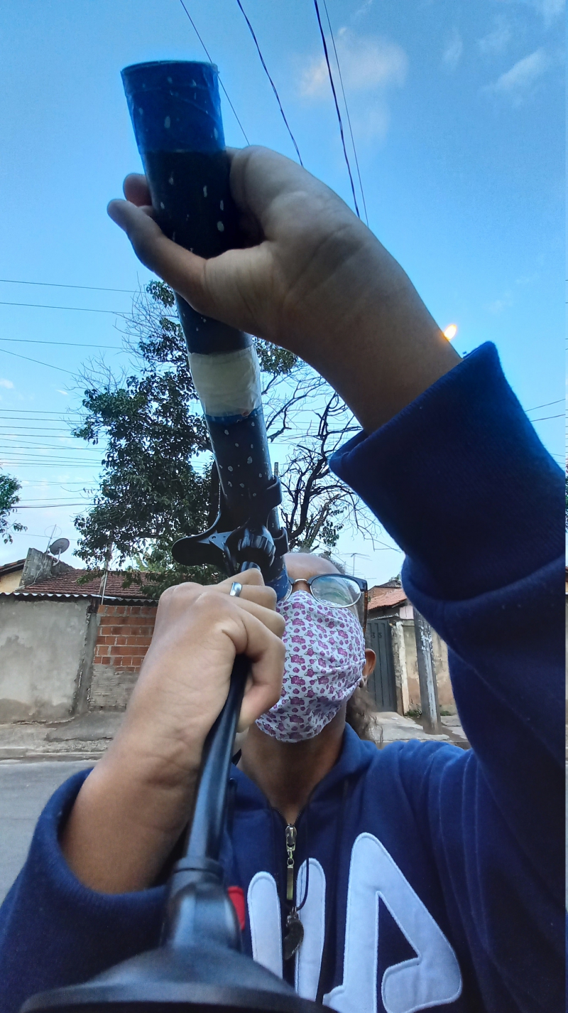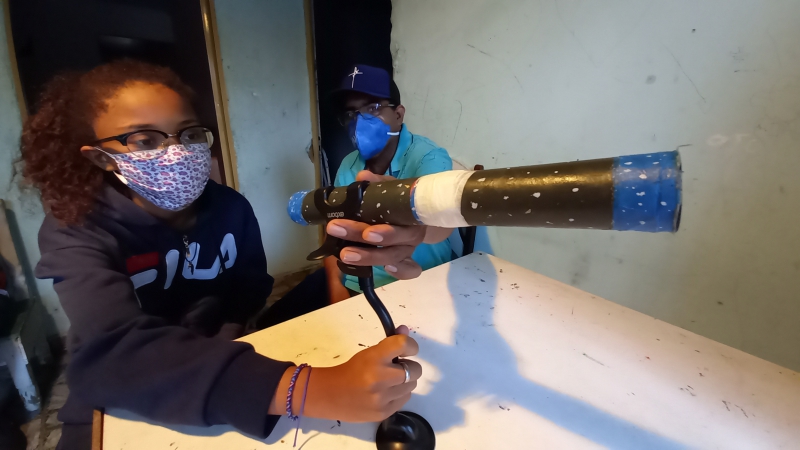 A luneta, feita em uma tarde por Edson após pesquisas na Internet, tem ajudado Gabriela nos questionários que ela responde semanalmente para a professora. O equipamento, inclusive, ganhou elogios ao ser mostrado na aula online.