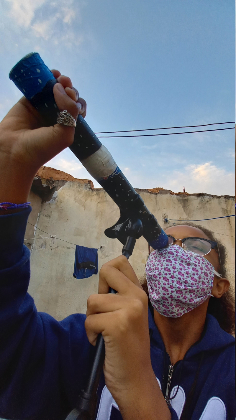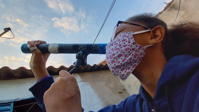 Em razão da pandemia, ela estuda a distância, mas não perde aulas, especialmente as de ciências e a matéria eletiva de astronomia. "Ela (luneta) não aproxima tanto, mas dá para ver bem melhor do que só com os olhos. Eu sempre quis uma para olhar para Marte e a Lua. É como se a luneta me transportasse daqui. Eu meio que viajo para o céu", avalia a garota.