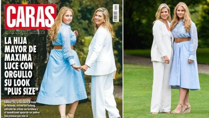 A filha mais velha do rei Willem-Alexander e rainha Maxima da Holanda foi escolhida para estampar a capa da revista ao lado da mãe, que é argentina. "Filha mais velha de Maxima usa orgulhosamente seu look 'plus size", afirmava a manchete da revista. A imagem fazia parte de uma sessão de fotos da família real holandesa.