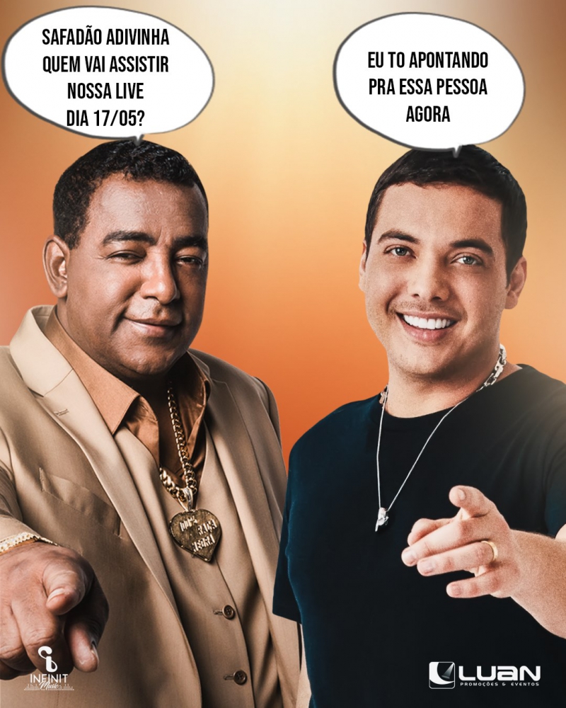 Live Solidária de Wesley Safadão com participação de Raça Negra: 17/5, hoje, às 16h, no canal do cantor no Youtube: http://youtube.com/wesleysafadao. Plataforma de doações: http://unidos.pagseguro.com.br