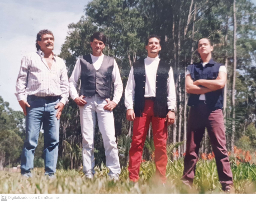 Paulo - Meu pai era músico de bares. Meu irmão se tornou músico e, depois, foi a minha vez. Meu pai ouvia muita moda sertaneja raiz e também era cover do Raul Seixas, em Araraquara. Vim de uma família humilde. Quando tinha uns seis anos, meus pais se separaram e ele ficou com nossa guarda. Ele fazia reforma de estofados em casa e tocava nos bares à noite. E, ainda criança, eu o acompanhava. Minha história com o acordeon começou porque ele queria que a gente o acompanhasse na música sertaneja. Meu irmão já tocava guitarra e bateria e meu pai comprou um teclado, porque era o que faltava para montar a banda. Fiquei com ele até meus 17 anos, quando comecei a tocar, junto com meu irmão, em uma banda de baile chamada Falso Brilhante. Toquei teclado por nove anos lá.