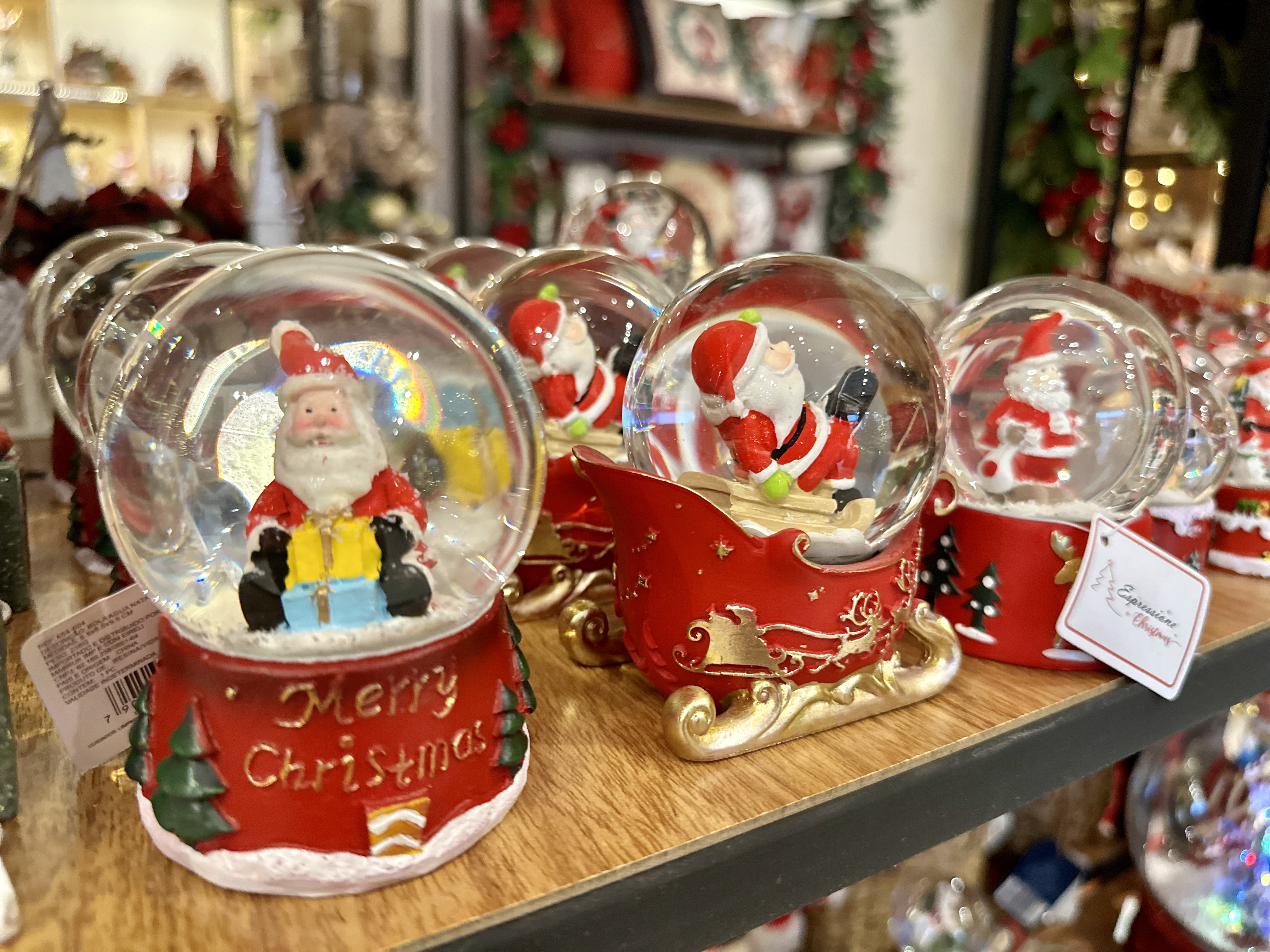 “Temos faqueiros, aparelhos de jantar, toalhas, pequenas decorações, globos de neve, papais noéis, árvores, bolas decorativas, trens elétricos, cenários, presépios… De lá, o cliente pode sair com a rena de jardim, com peças infláveis gigantes que chegam a 2 metros e 80 centímetros de altura e até com a capacho da porta”, afirma Nágela.