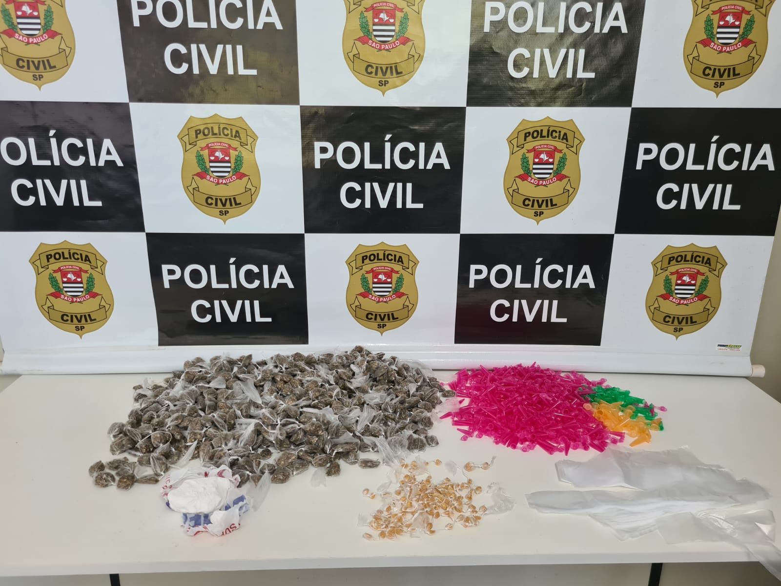 Ao todo, foram apreendidos 25 quilos de maconha e 664 porções desta droga; dezenas de buchas de maconha (skunk), que possui maior teor de THC e é mais cara; 600 gramas de cocaína e um tablete deste entorpecente; 200 gramas de crack; centenas de pinos e saquinhos plásticos para embalagem.