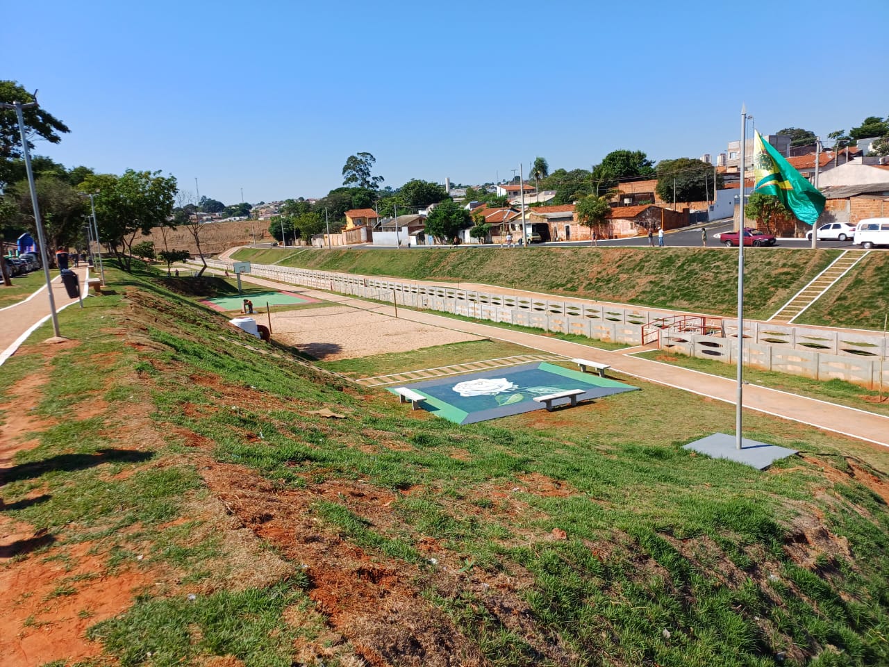 Antes do complexo esportivo, foram executadas as obras de drenagem e construção de galerias pluviais, que são um exemplo bem-sucedido de recuperação de processo erosivo em fundos de vale. Os serviços foram iniciados em maio de 2023 e concluídos em dezembro do mesmo ano. Posteriormente foi construído o complexo poliesportivo e de lazer, inaugurado neste sábado.