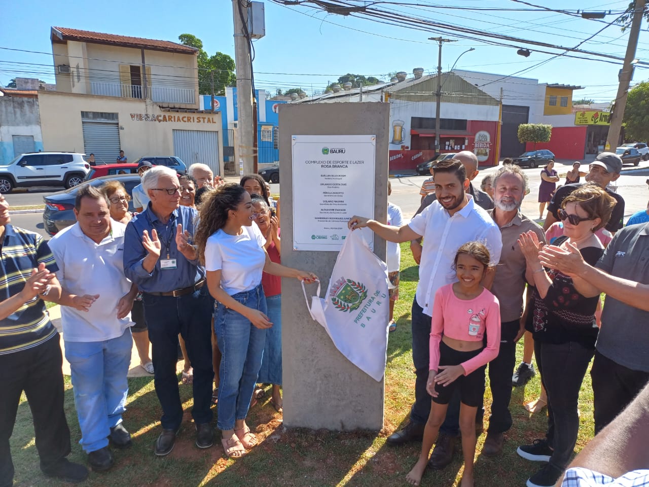 A prefeita Suéllen Rosim (PSD) inaugurou neste sábado (6) as obras de drenagem e o Complexo de Esporte e Lazer do Jardim Rosa Branca, região Noroeste de Bauru. Neste parque linear, implantado na altura do quarteirão 15 da avenida Pinheiro Machado, esquina com a rua José Portela Cunha, foram construídos quadra de basquete 3, quadra de vôlei de areia, minicampo society, playground, academia ao ar livre e pista de caminhada.