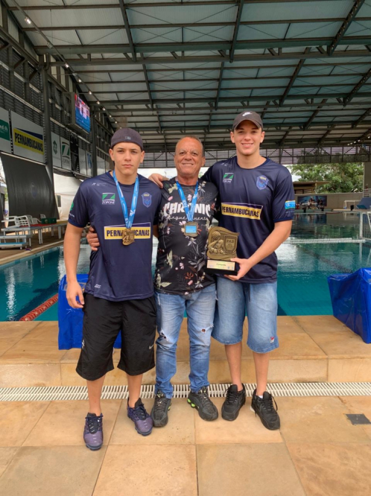 Caumo ladeado pelos filhos Gustavo e João Vitor, ambos campeões de polo pela ABDA