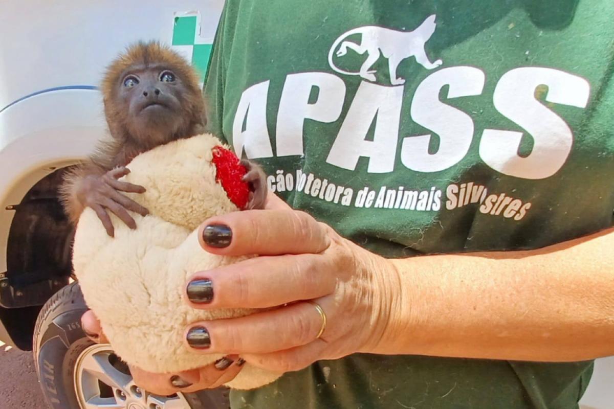 Filhote de bugio-marrom-do-norte estava em uma fazenda em Getulina; mãe foi morta por outro animal