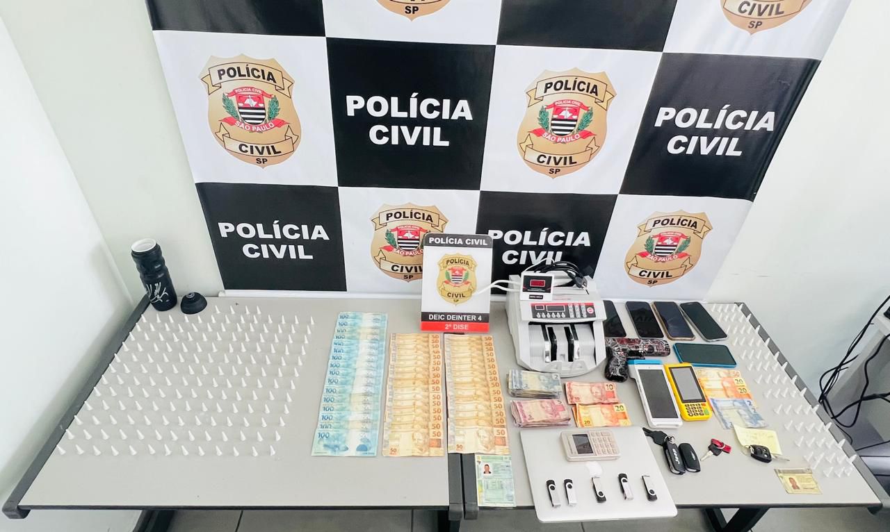 O investigado foi preso pelos policiais civis em sua residência no condomínio fechado com R$ 3.150,00 em dinheiro, uma máquina de contar dinheiro, um terminal de pagamentos de cartão, um simulacro de arma de fogo e celulares. Também foram apreendidos no local um Ford Fiesta, uma Honda CB 250 Twister, o Camaro, um Jeep Renegade e vários documentos que serão analisados, dentre eles escrituras de imóveis.