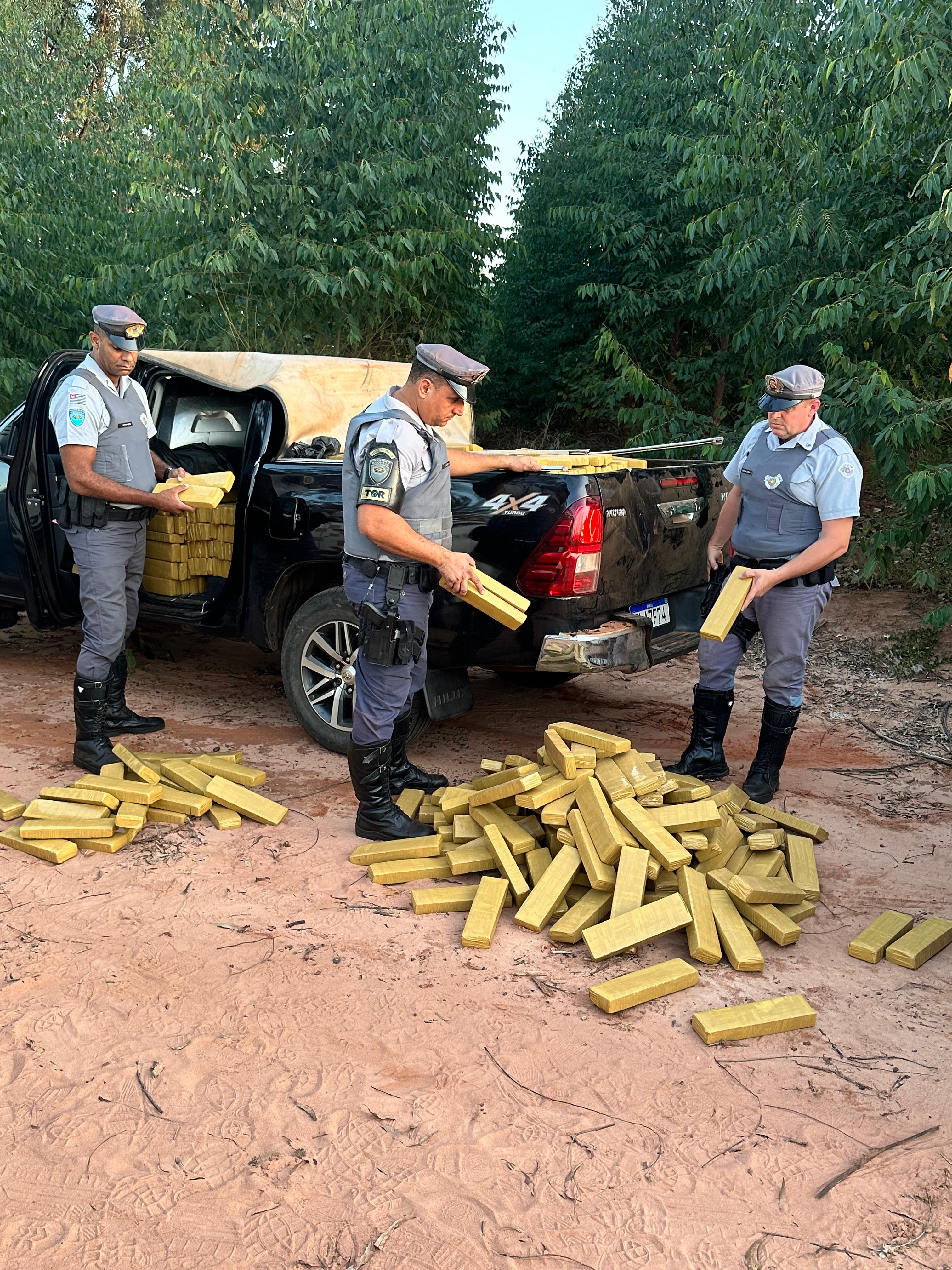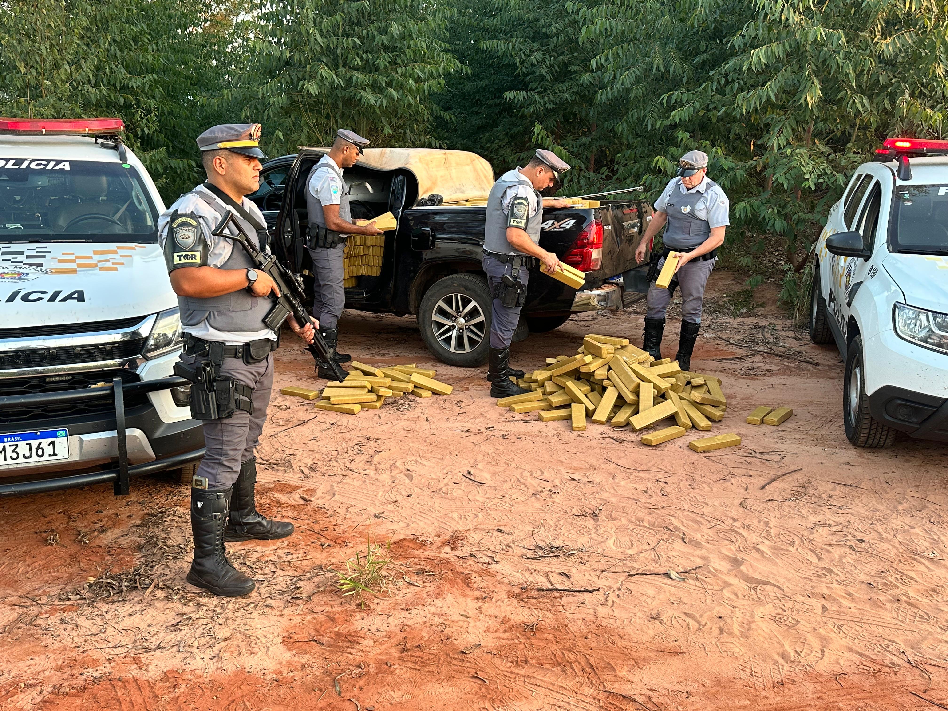 Paulistânia - A maconha apreendida por policiais rodoviários do Tático Ostensivo Rodoviário (TOR), em ação conjunta com as Forças Integradas de Combate ao Crime Organizado (Ficco/SP), na tarde desta sexta-feira (23), dentro de uma caminhonete interceptada após fuga e acompanhamento no quilômetro 272 da rodovia engenheiro João Baptista Cabral Rennó (SP-225), a Bauru-Ipaussu, próximo a Paulistânia (48 quilômetros de Bauru), totalizou mais de 1,3 tonelada. Até a publicação desta reportagem, ninguém havia sido preso.