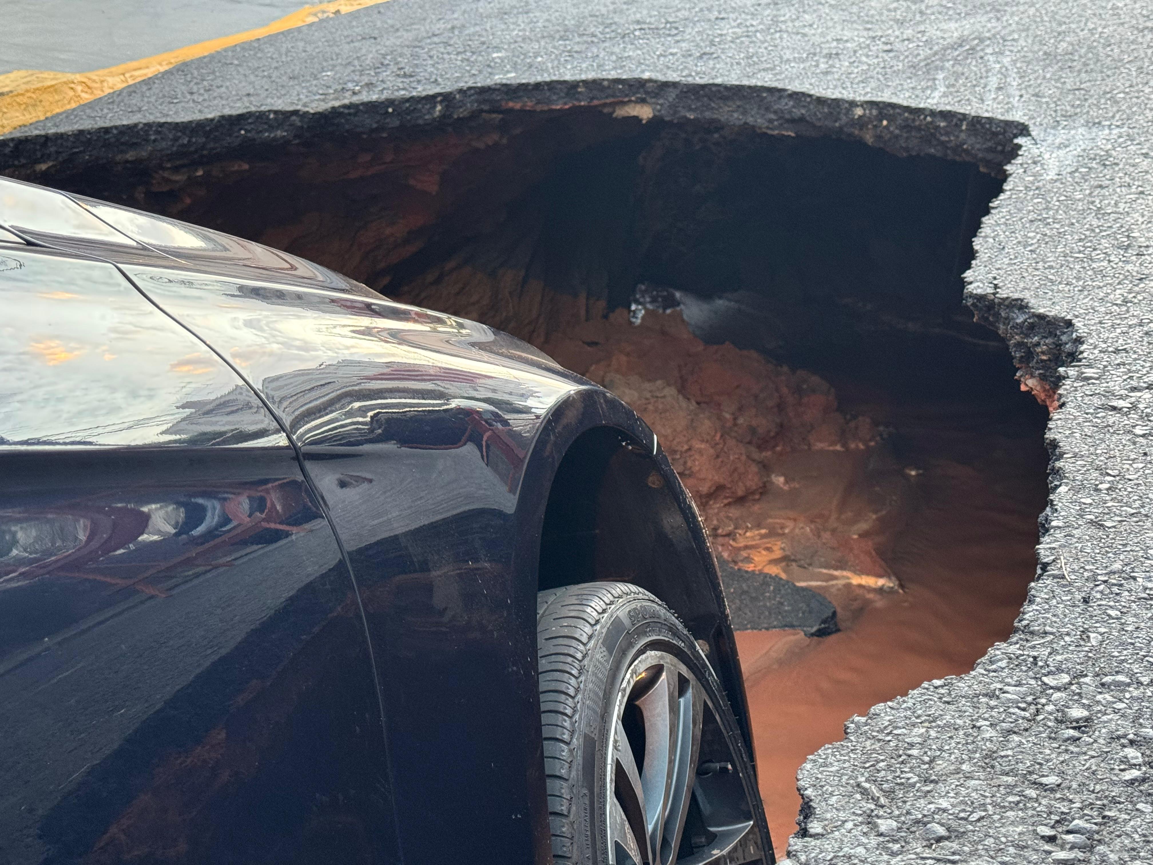 Um motorista teve sua BMW 328i preta “engolida” por uma cratera de seis metros de comprimento, que se formou na noite deste domingo (20), por volta das 23h30, na quadra 5 da Rua Rodrigo Romeiro, próxima à Avenida Nações Unidas, na região central de Bauru. Parte do calçamento, em frente a um prédio, também afundou e foi interditada.
