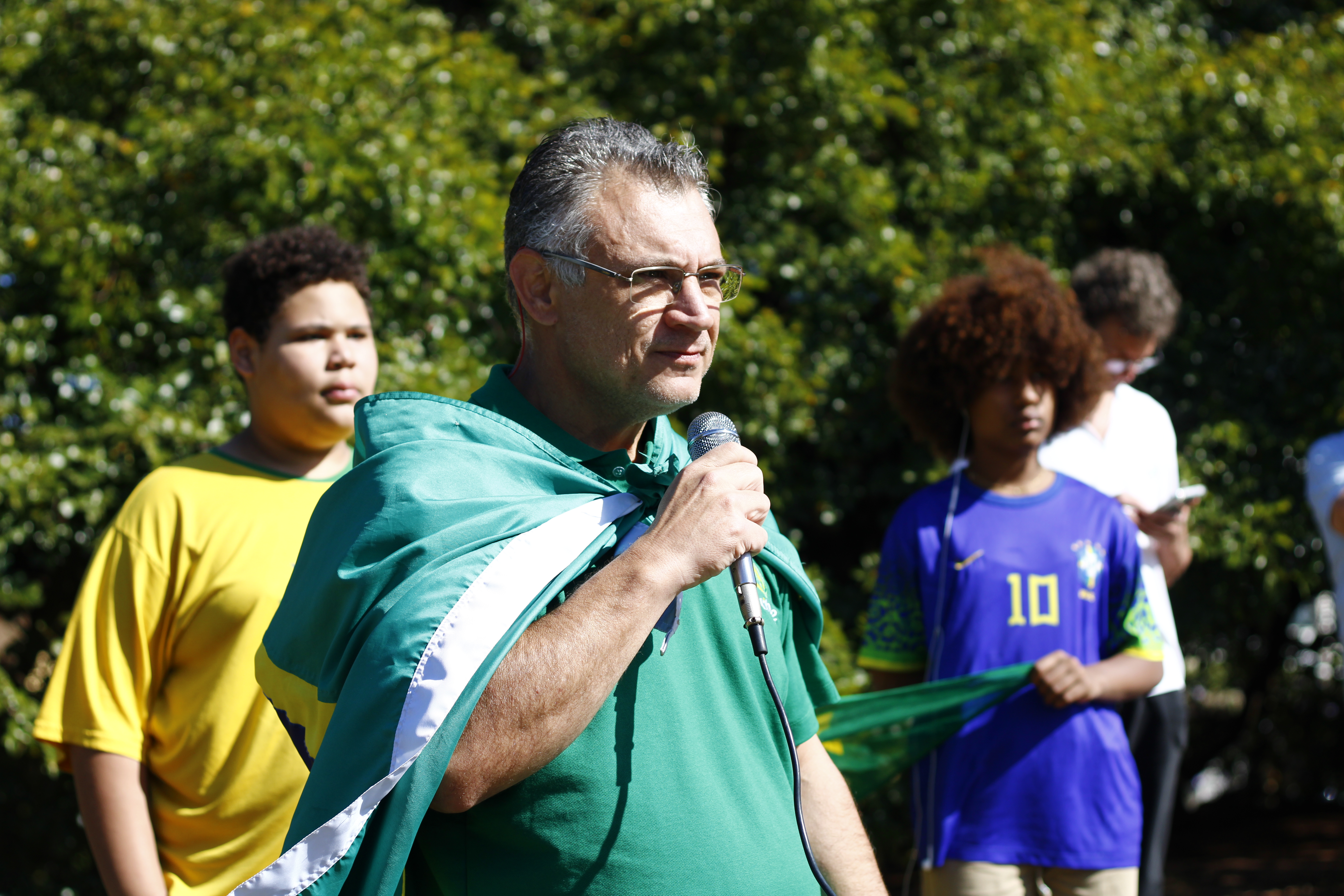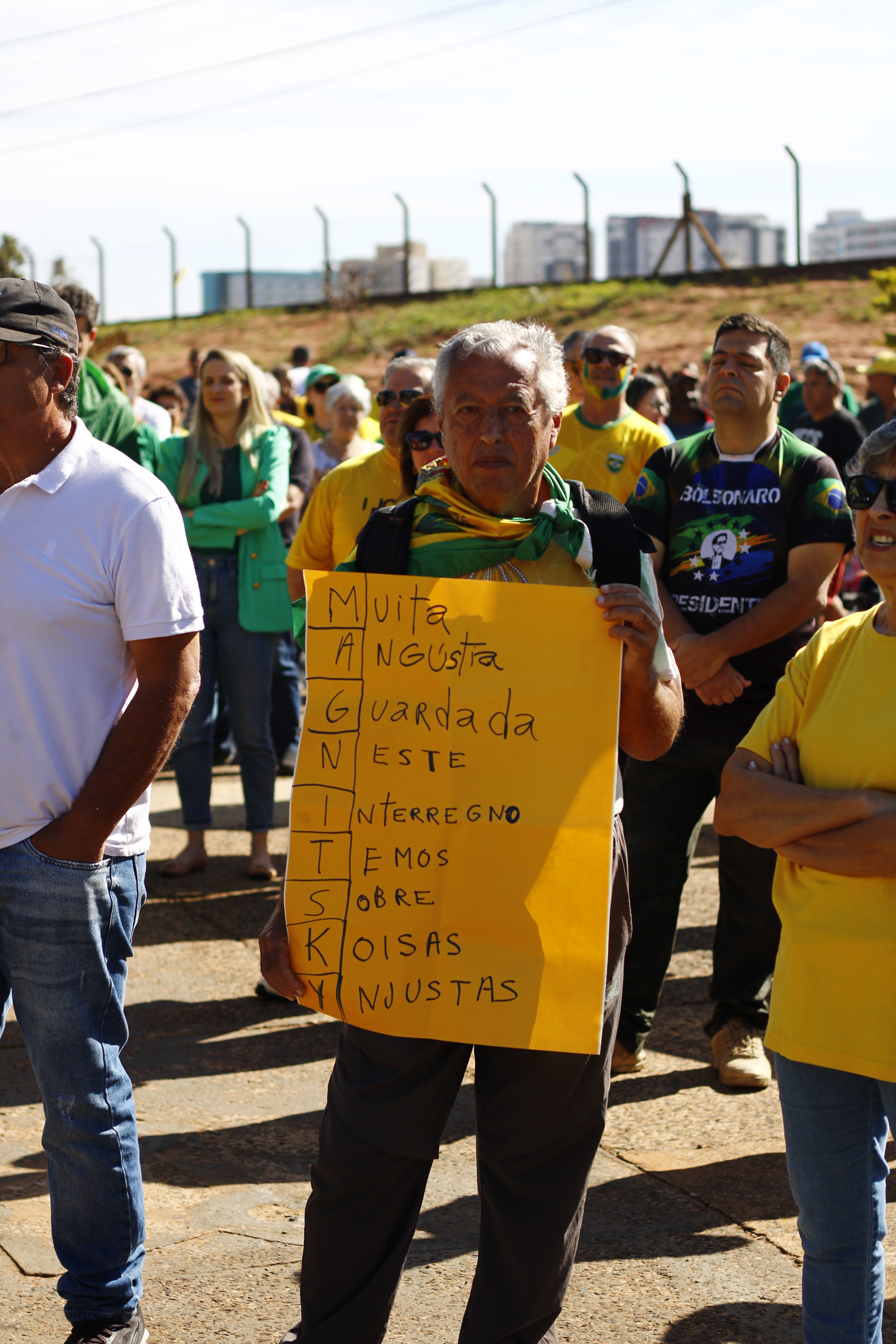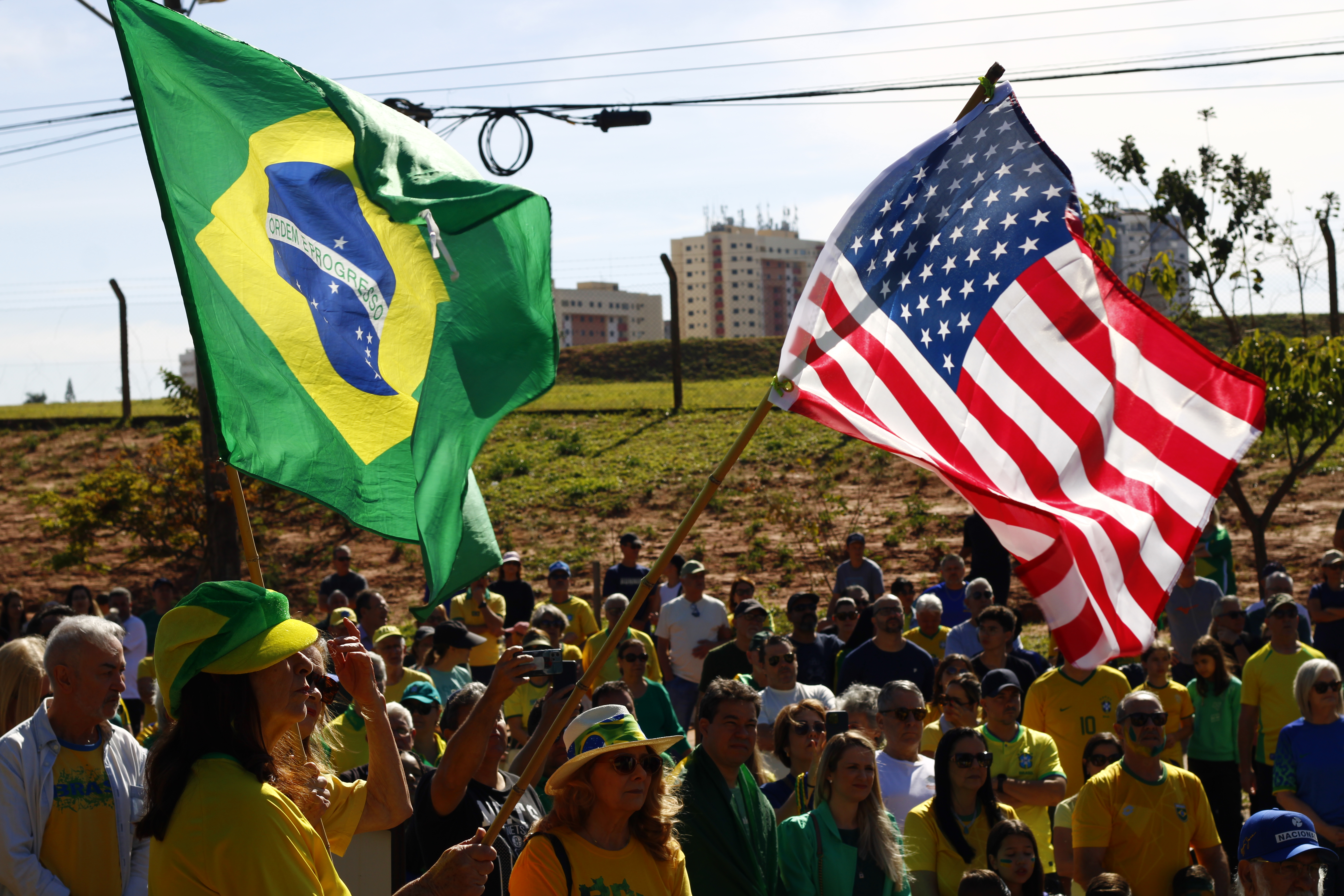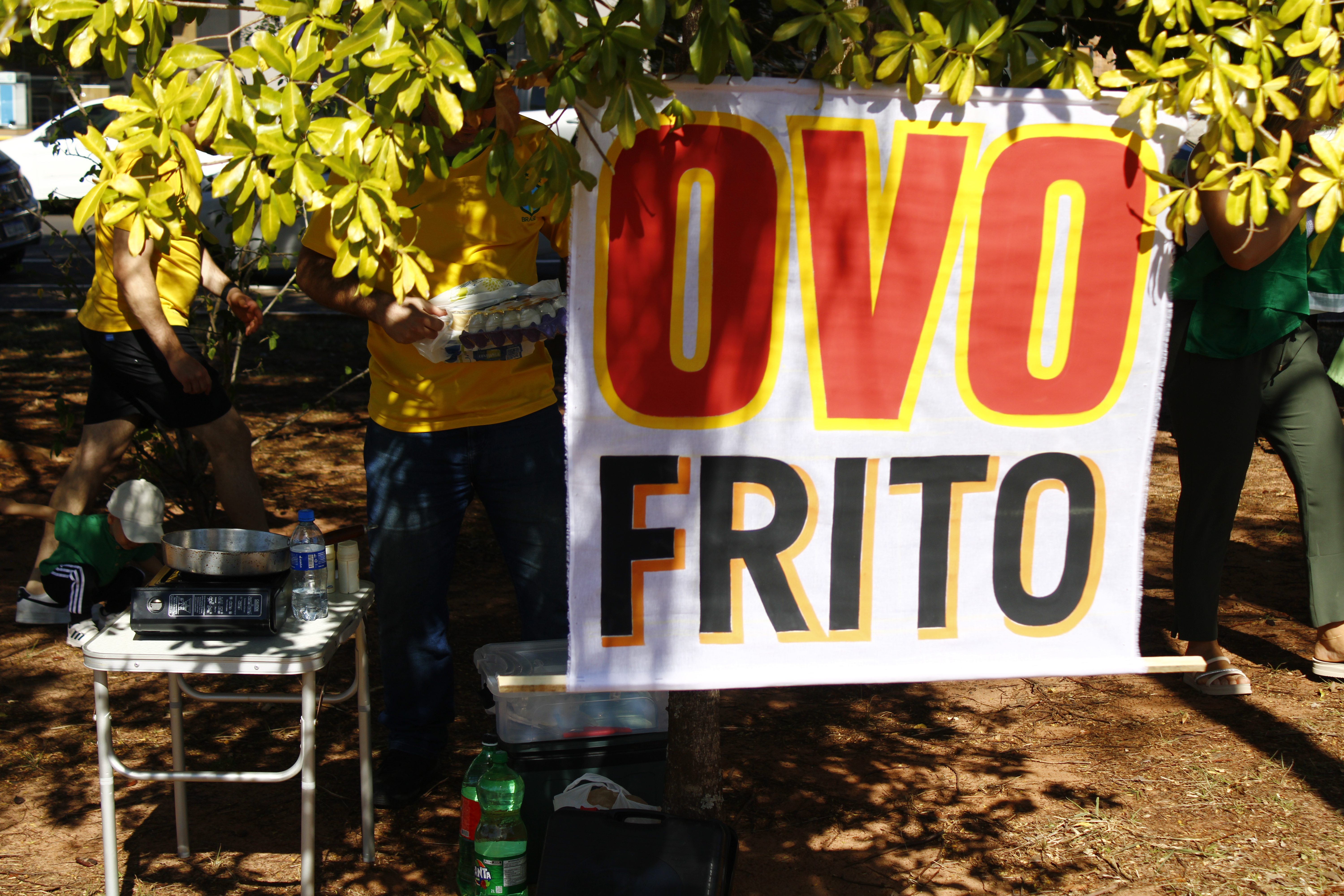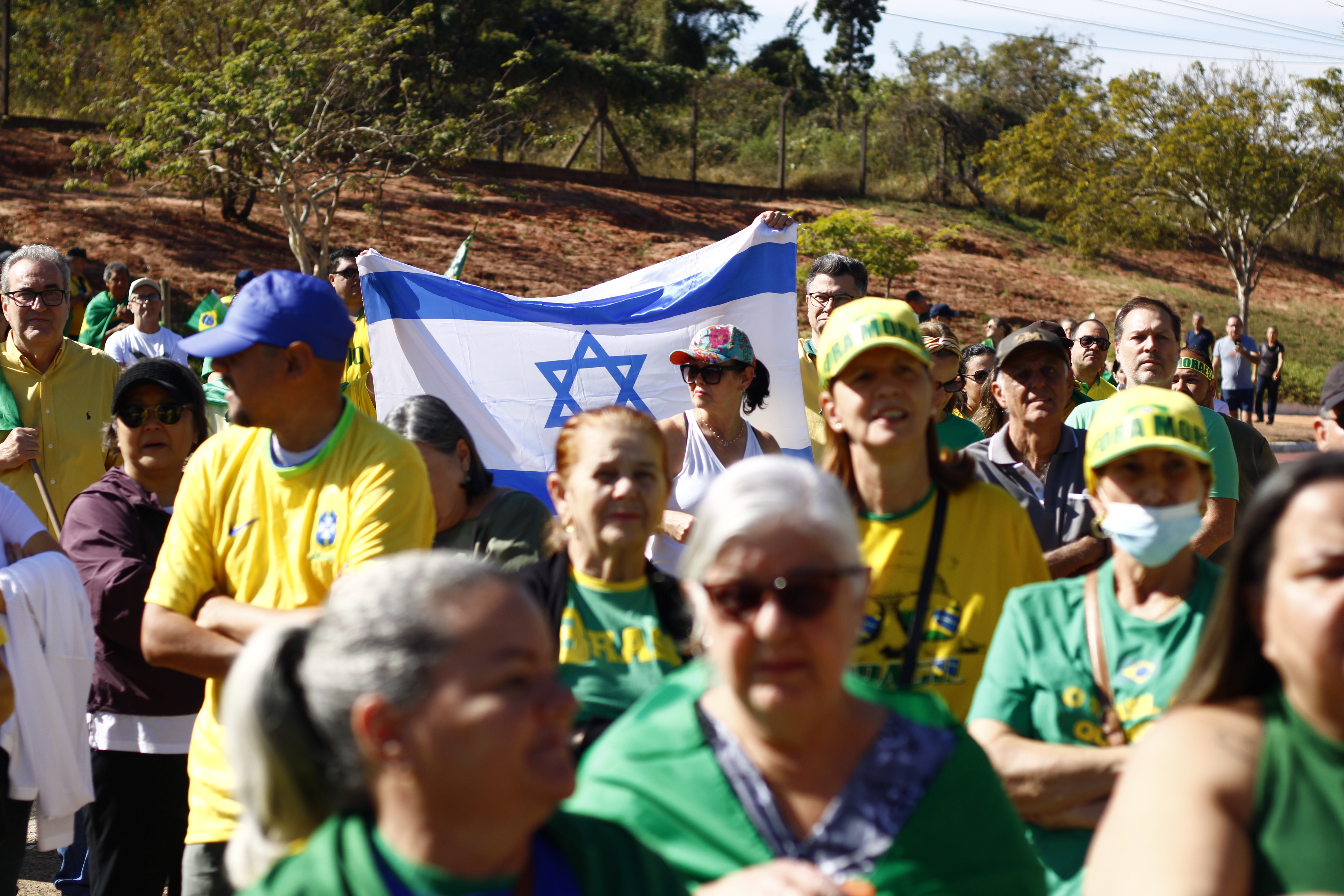 Após os discursos, os manifestantes caminharam até a quadra 5 da rua Ignacio Alexandre Nasralla, onde empunharam bandeiras do Brasil e aplaudiram motoristas que buzinavam em apoio. Um dos gritos mais ouvidos era: “A nossa bandeira jamais será vermelha”.