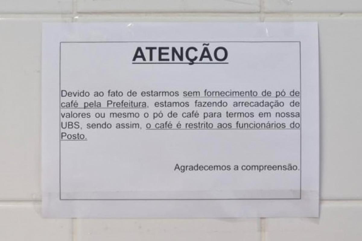 O pedido de ajuda para garantir o café dos servidores da UBS Bela Vista foi afixado nas paredes da área restrita aos funcionários e até no micro-ondas usado pelos trabalhadores. O texto informava: "Devido ao fato de estarmos sem fornecimento de pó de café pela prefeitura, estamos fazendo arrecadação de valores ou mesmo o pó de café para termos em nossa UBS. Sendo assim, o café é restrito aos funcionários do posto. Agradecemos a compreensão".