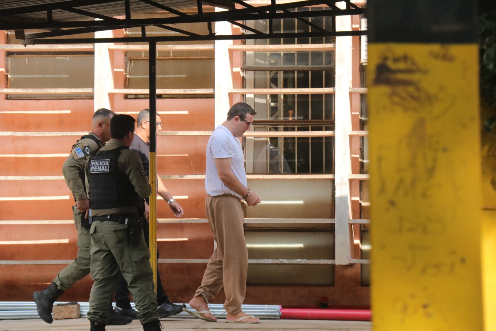 Visivelmente mais magro, Franceschetti chega ao Fórum para o segundo dia de julgamento (Foto: Priscila Medeiro)