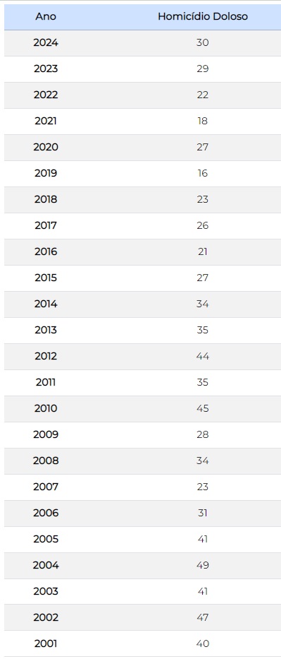 O total de tentativas de homicídio na cidade também já ultrapassou o de 2024, quando entre janeiro e dezembro foram registrados 32 casos. Já em 2025, segundo dados da SSP e da Seccional, atualizados até esta terça-feira (18), foram 46.