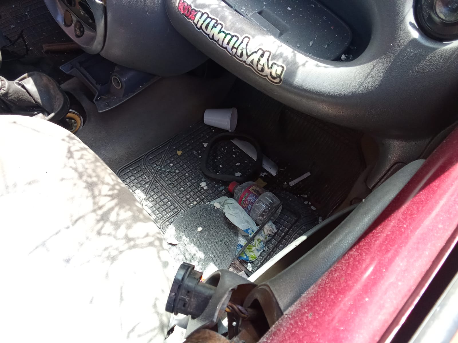 A condutora do Ford Ka foi levada ao Plantão Policial, onde deve ser autuada em flagrante. Junto dela, no veículo, estava uma criança, que seria seu filho. No chão do veículo havia um 'corote' de cachaça, como mostra a foto abaixo.