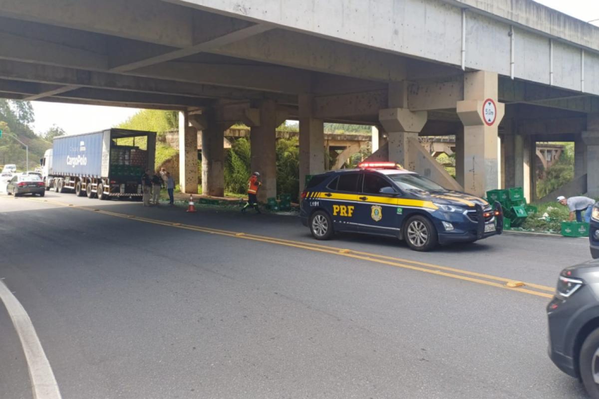Uma carga de cerveja caiu de uma carreta na rodovia Presidente Dutra, na divisa entre Cruzeiro e Cachoeira Paulista, na tarde desta quinta-feira (27). O incidente provocou interdição de uma faixa da estrada, por volta das 15h.