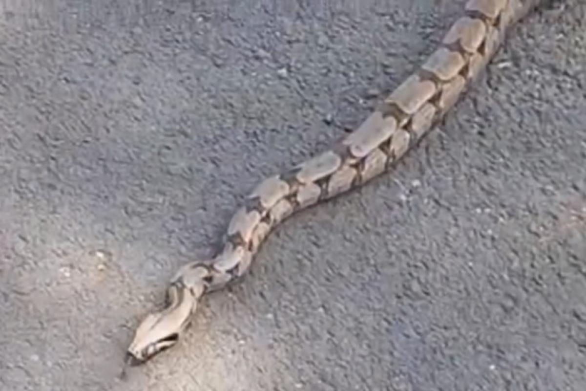 Quem a viu e filmou foi o munícipe Marcio da Costa, que narrou o encontro com o animal enquanto realizava sua caminhada matinal. Nas imagens, a cobra não demonstra comportamento agressivo.