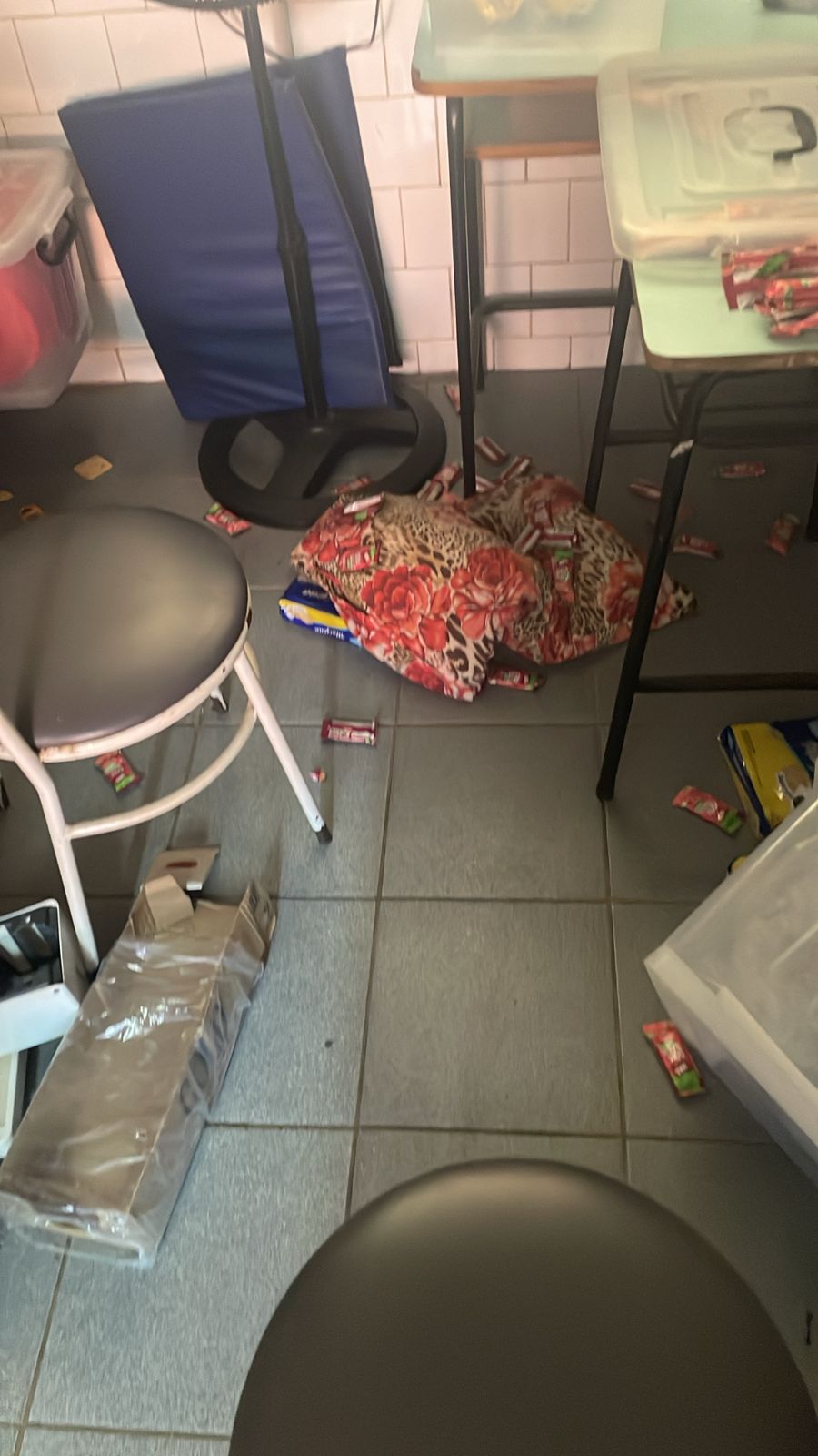Desta vez, os criminosos levaram itens essenciais da merenda escolar. Fugiram com itens como liquidificador industrial, panela de pressão, escorredor de louça, frigideira, diversas panelas, cinco assadeiras e um caldeirão. Também foram levados 11 litros de óleo, oito quilos de leite em pó, azeite, alho e suco utilizados na alimentação dos alunos.