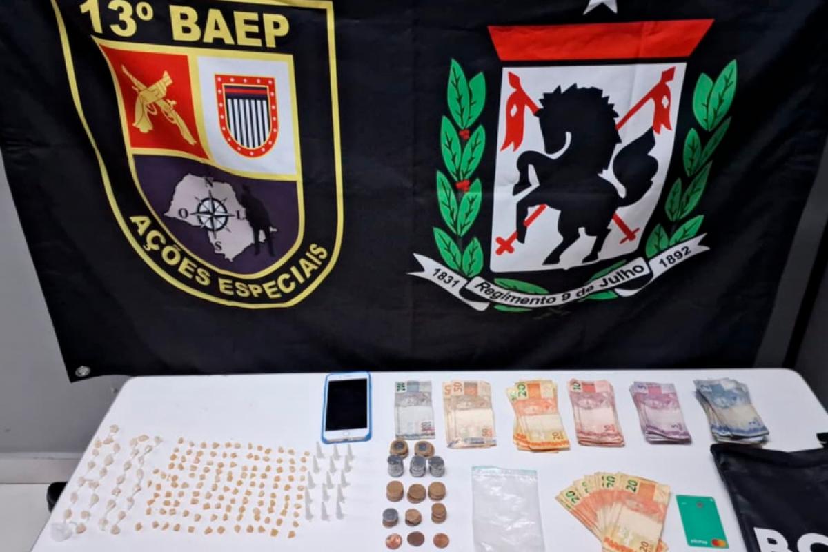 O trio foi abordado e, com um dos suspeitos, que estava com uma bolsa, foram localizados 154 porções de crack, 15 pinos com cocaína prontos para comercialização e R$ 886,10 em dinheiro. Ele confessou a prática de tráfico no local e foi preso em flagrante. Os outros dois alegaram que estavam lá para comprar e consumir entorpecente. Como eles não tinham nada de ilícito, foram liberados.