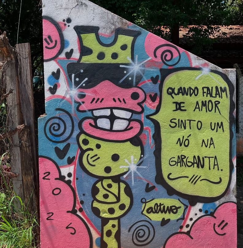 As frases reflexivas como "Manda essa tristeza embora", "E quando falam de amor, dá um nó na garganta" e "Acredite em dias melhores" vieram logo depois, com o objetivo de levar mensagens positivas a quem passa. "Pensei que poucas pessoas observam as paredes por onde andam, mas, se alguém olhar, que veja algo bom, algo que ajude no dia a dia", explica o artista.