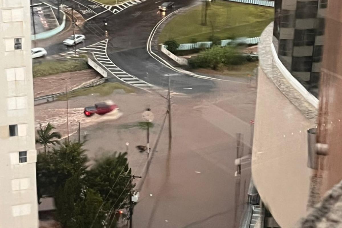 Na avenida Hélio Palermo, nas proximidades da ponte da rua General Telles, a via ficou totalmente intransitável por causa do grande volume de água.