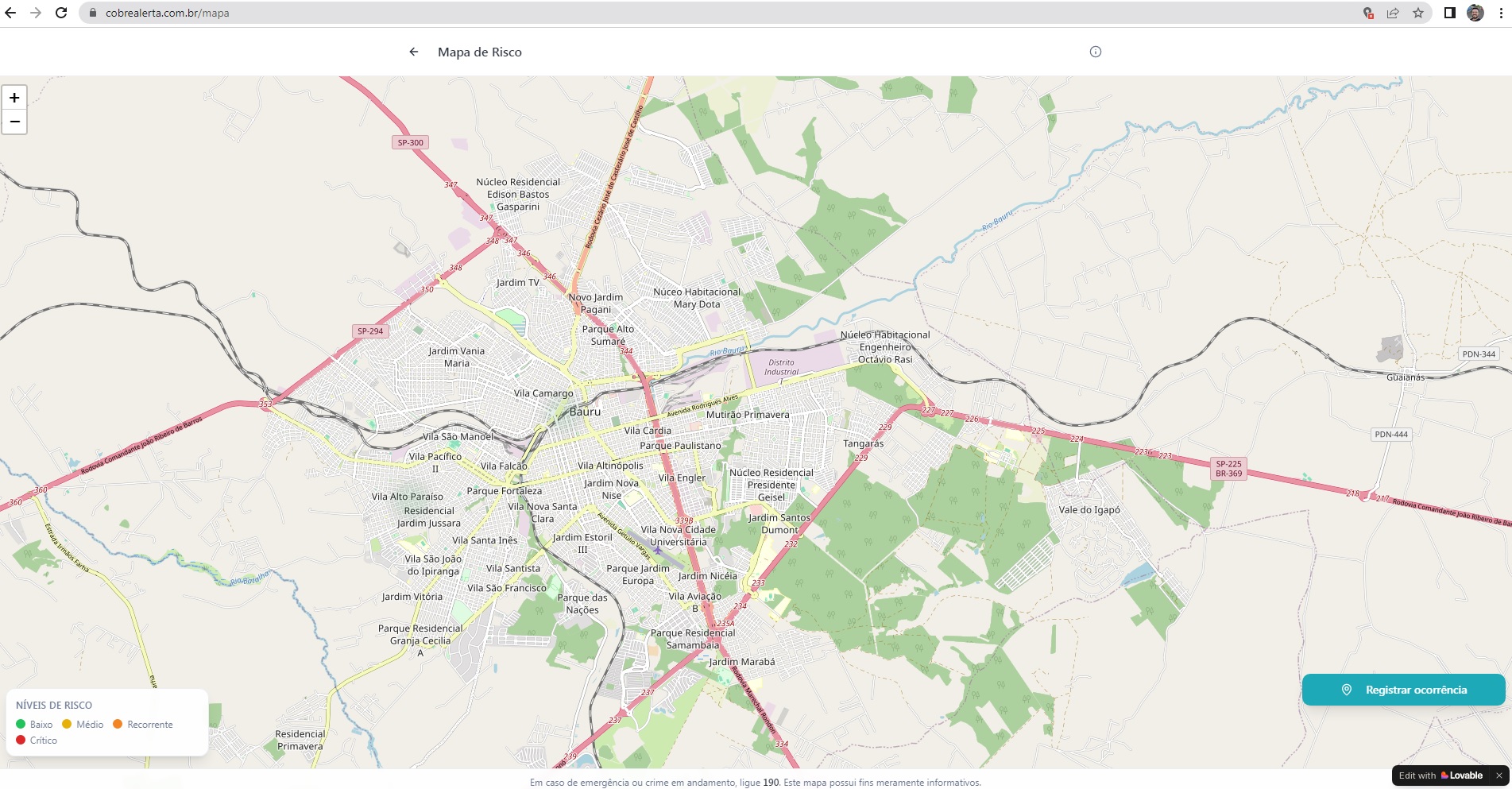 O Cobre Alerta destaca que o registro de ocorrências na plataforma não substitui a necessidade de lavratura de BO na Polícia Civil nem o acionamento imediato da Polícia Militar pelo telefone 190.