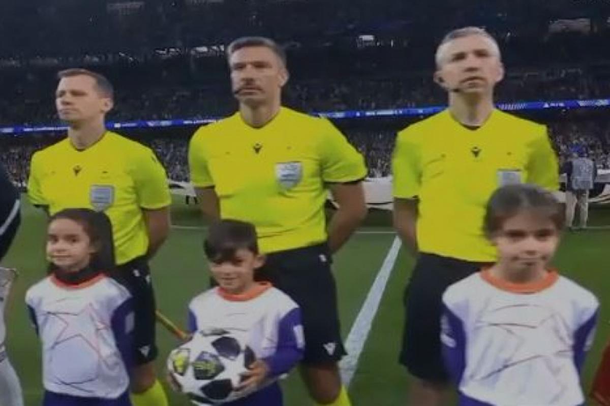 Durante a tradicional entrada das crianças com os times, Enzo acompanhou o trio de árbitros e jogadores e ficou junto deles no momento da execução dos hinos nacionais, segurando a bola oficial da partida.
