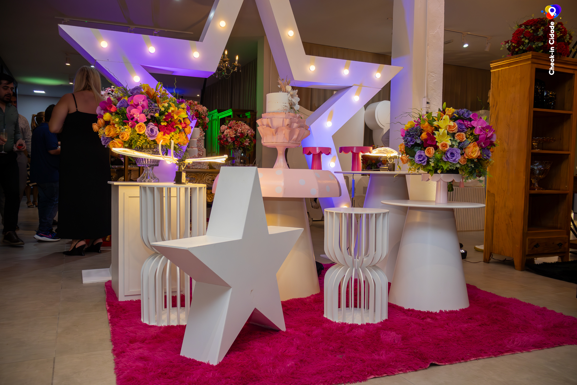 O grande destaque do novo endereço é o showroom, pensado justamente para deixar tudo mais próximo e real para o cliente. Ali, dá para visualizar as decorações, entender melhor as possibilidades e até se imaginar dentro do próprio evento. A proposta é simples: fazer com que cada pessoa se sinta mais segura e inspirada na hora de tirar o projeto do papel.