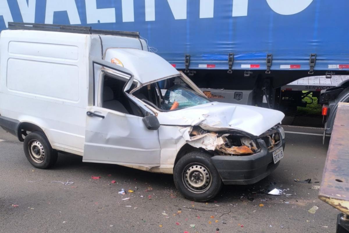 Veículo Fiorino ficou com a parte da frente amassada