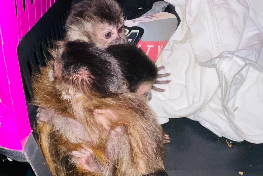 Quatro filhotes de macacos-prego, vítimas de tráfico, foram resgatados por policiais militares do Tático Ostensivo Rodoviário (TOR), no fim da noite desta terça-feira (7), na rodovia dos Bandeirantes, em Itupeva. Dois homens foram presos por crime ambiental. Eles alegaram que haviam comprado os animais por R$ 300 cada. Os macaquinhos estavam assustados e abraçados uns aos outros.