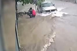 Imagens mostram carros arrastados e engolidos na chuva; VÍDEO
