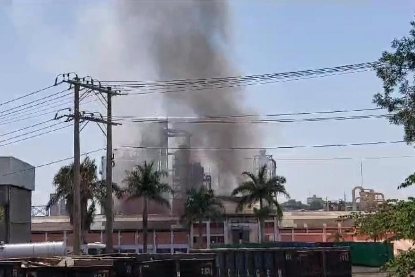 Um incêndio de grandes proporções atingiu a empresa Eucatex, no Jardim Marília, em Salto, no início da tarde desta segunda-feira, 23.